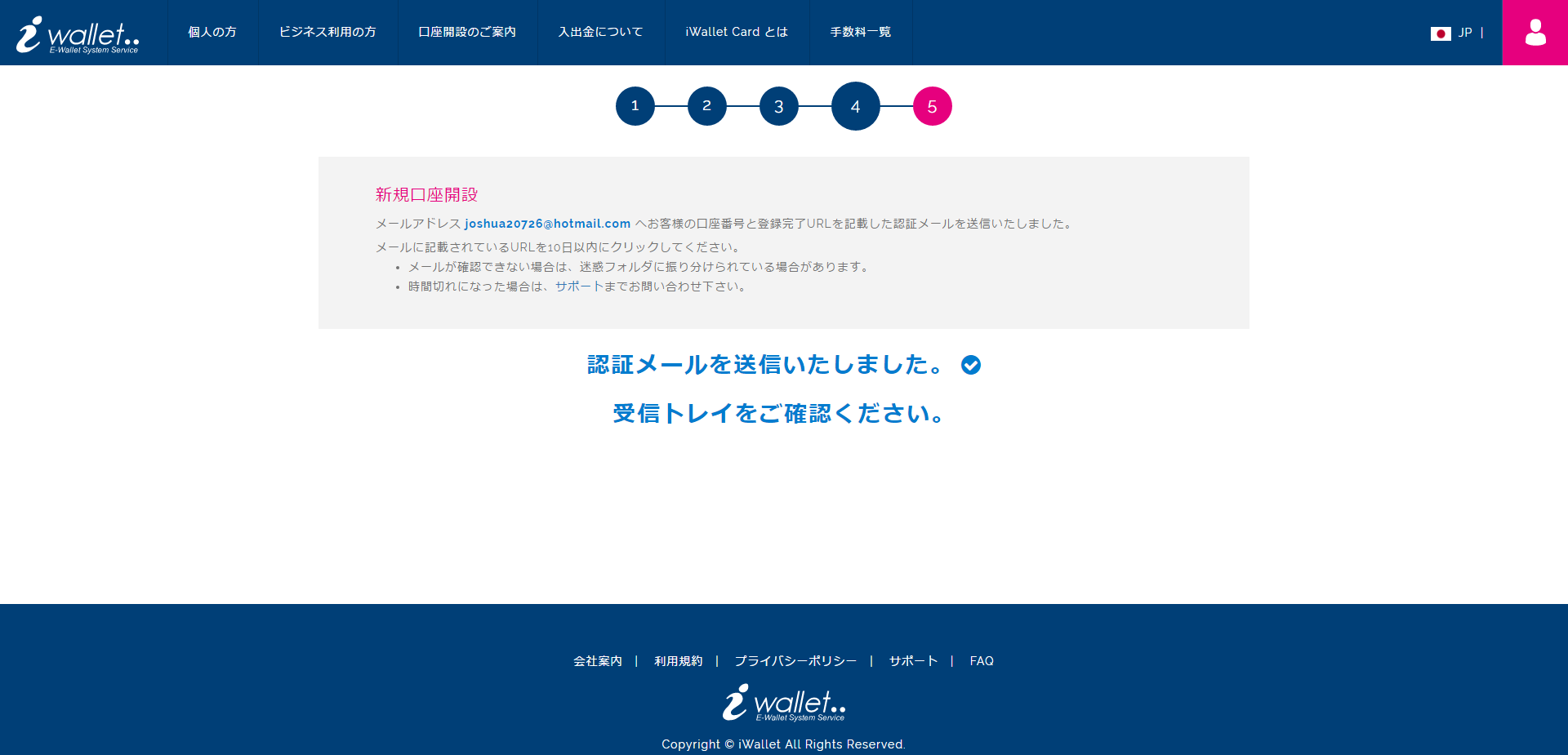 KYC書類(本人確認書類と住所確認書類)の審査が完了しましたらiWallet口座の全ての機能を利用する事が出来ます。