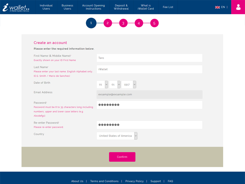 2.輸入登錄密碼、姓名、國家、生日後提交,您將會在填寫的註冊電子信箱內收到一封確認郵件。